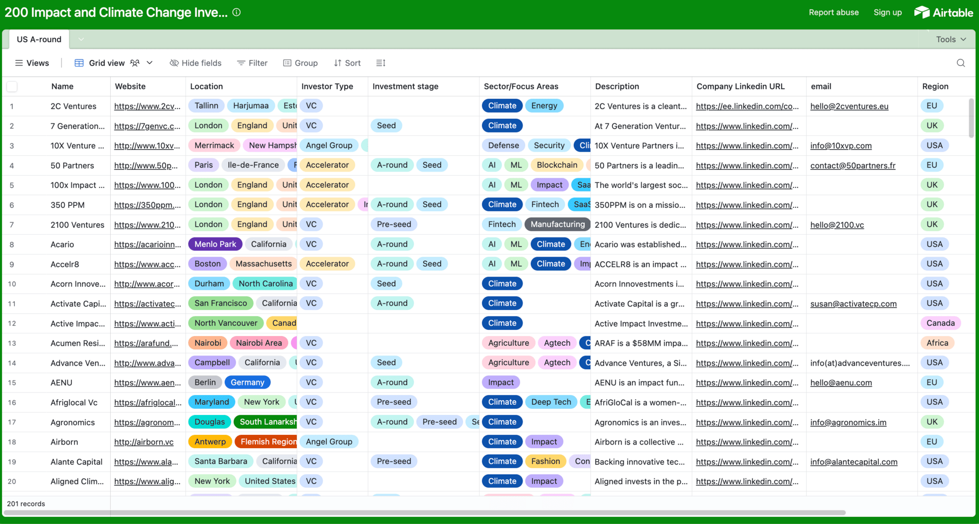 We have also put together a list of 200 impact and climate investors.